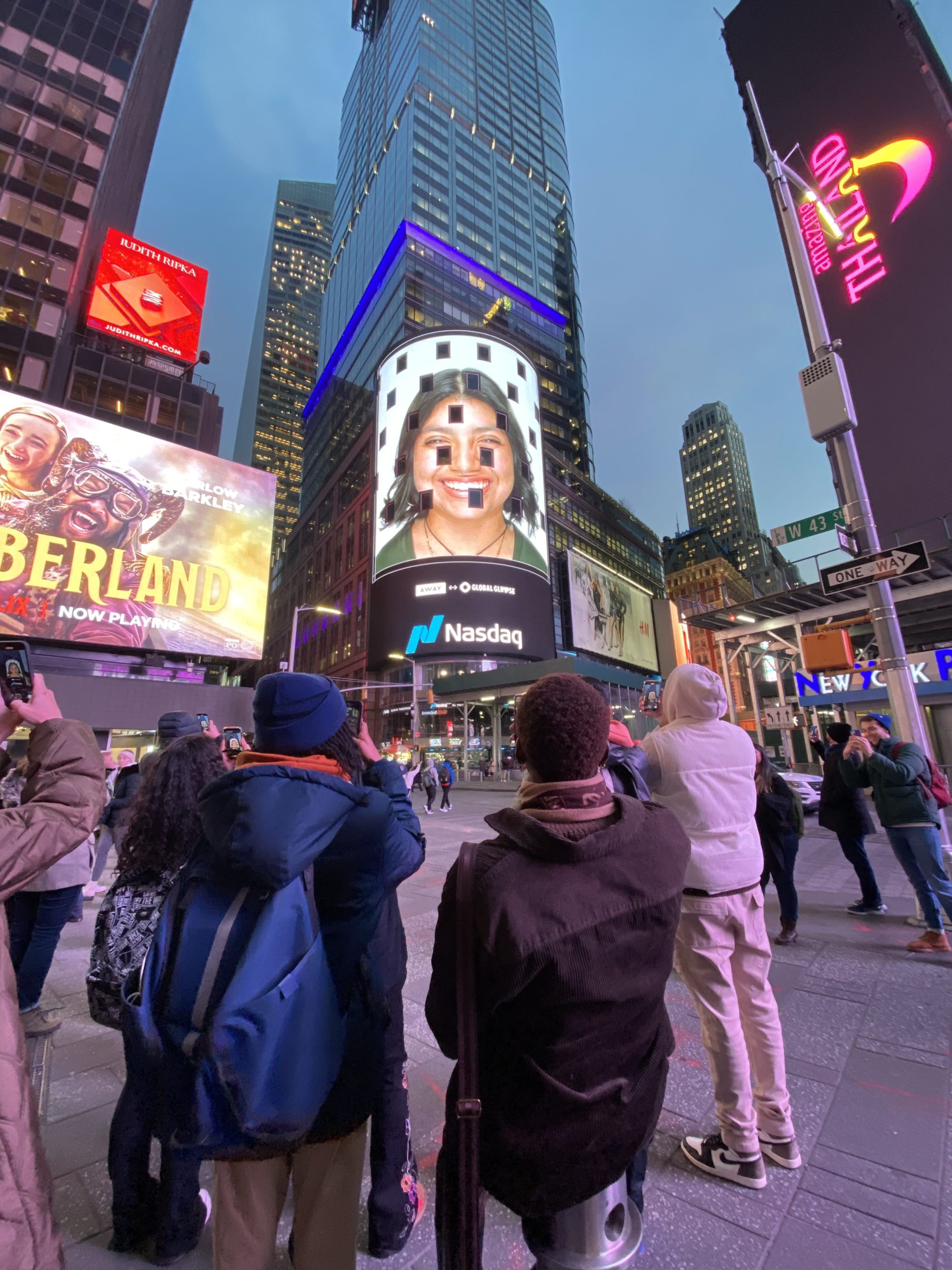 Briana Espinoza, a Global Glimpse ambassador and Heckscher Scholar graduate, appeared in a compaign for Global Glimpse on a billboard in Times Square.